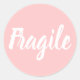 Pastel pink, trendy, minimalist, modern and simple packaging sticker, with the text: fragile.