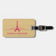 Elegant and chic French Flourish Luggage Tag featuring a faux woodgrain look background and an Eiffel Tower design in magenta adorned with cascades of stylish swirls. This girly and trendy design is easy to customise with the personalised text of your choosing. Click "Customise It" to find more personalisation options.