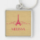 Elegant and chic French Flourish Premium Keychain featuring a faux woodgrain look background and an Eiffel Tower design in magenta adorned with cascades of stylish swirls. This girly and trendy design is easy to customise with the personalised text of your choosing. Click "Customise It" to find more personalisation options.