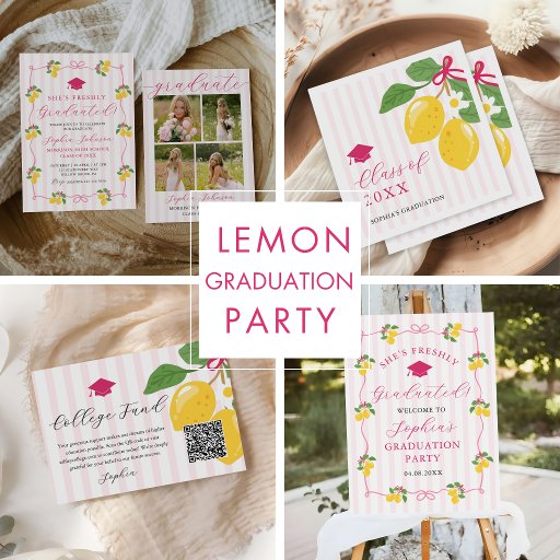 Pink Freshly Lemon Citrus Graduation Party Invitation