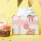 Pink Fringe Dress Bear with Pink Balloon Wrapping Paper