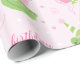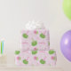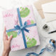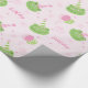 Cute wrapping paper featuring a sweet green frog wearing party hats with soft pink and green colours. Pattern has the word "Birthday" on it, but does not mention the year, so this is perfect for ANY age birthday.