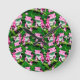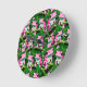 Pink Frog On Green Leaf Pattern Design Round Clock