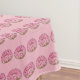 Tablecloth print features an original marker illustration of a row of delicious doughnuts with sprinkles and pink frosting.