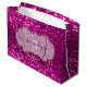 Pink Fuchsia Framed Royal Monogram Name Glitter Large Gift Bag