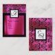 PINK FUCHSIA SILK DAMASK CLOTH ,SQUARE MONOGRAM BUSINESS CARD