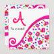 PINK FUCHSIA WHITE ABSTRACT DECO SQUARE MONOGRAM INVITATION