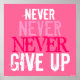 Pink Fuchsia & White Never Give Up Art Poster