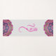 Indian inspired yoga mat done in white, with a hot pink decorative Ganesha symbol, in the middle. Graphics of colourful pink mandalas decorate both ends of the mat. Same design is featured on both the front and backside of the mat.