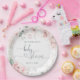 Personalizable pink floral paper plates.