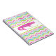 It's easy to personalise this colourful chevron stripe and pink polka dotted gator notebook with a name before ordering! Features pink, green, aqua blue, grey, and white chevron stripes with a pink and blue polka dotted alligator and an area you can easily customise with a name!