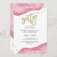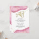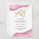 These elegant, modern 60th birthday party invitations feature watercolor pink geode stones, with faux gold look typography and splashes.