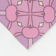 A bathroom set featuring pink towels with a geometric pattern of blue flowers and hexagons. Includes a hand towel and matching washcloth.