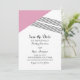 Modern and trendy Geometric Stripe Save the Date Announcement with a pink triangle and thinly striped accent. This simple yet elegant invite is set up to be easily customised with your wedding information. Find more customisation options by clicking Customise It.