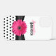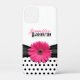Chic and trendy black and white polka dot hot pink gerbera daisy (gerber daisy) flower and ribbon iPhone 6 Barely There () case. Add some retro polka dots and girly floral style to your iPhone 6 case. Personalise it with your first and last name.