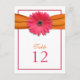 Pink Gerber Daisy Orange Ribbon Table Number Card