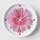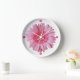 Pretty decorative wall clock done in a pale pink and white polka dot pattern. A pink graphically enhanced Gerber daisy bloom, decorates the middle, and four pink buttons denotes the quarter hours. Customise to add any text you might want. Stylish clock that makes a great gift idea.