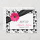 Pink Gerbera Daisy Damask Wedding RSVP Postcard