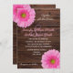 Featuring distressed brown barn wood planks background with pretty bright light baby pink garden gerbera, daisies floral design. Great for rustic wedding, barn wedding, backyard wedding, country wedding. For personalisation, click the "Customise it" button to modify this template. All font style, colours, and sizes can be edited to suit your needs. 3326d