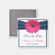 The text on this navy blue and pink gerbera daisy wedding save the date magnet is fully customisable. You can change it using the personalise option. For more extensive changes to the magnet, including changing the background colour, font, font colour, or font layout, choose the customise option. This is a great save the date magnet for a wedding with a pink and navy blue gerbera daisy theme. Simple, pretty, and cheerful. This magnet is currently customised for a wedding, but would also work great for a bridal shower, special birthday, anniversary, or garden party. All you need to do is change the wording. It would also make a great wedding favour if you changed the text to remove the words "save the date" or changed the words to "thank you".