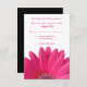 The text and background colour on these pink gerbera daisy wedding reply or rsvp cards are fully customisable. You can change the text with the personalise options. For more extensive changes to the card, including changing the background colour, font, font colour, or text layout, use the customise option. The colours on this card are hot pink and white with a black back. It would be great for a wedding with a pink gerbera daisy theme. Make sure to check out the available paper type options as well. With changes to the text, this would make a good direction, reception, or accommodation card as well.