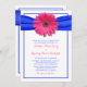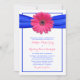 Pink Gerbera with Blue Satin Ribbon Invitation