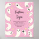 Cute halloween theme baby shower custom sign. Illustration of cute ghosts with stars. The background is pink.