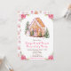 This elegant and festive gingerbread house decorating party invitation features a watercolor gingerbread house and beautiful pink poinsettia flowers. The text combines handwritten script and sans serif fonts for a stylish and modern look. The snowman, decorated pine trees and holiday wreath add a festive touch. This is perfect for Christmas parties.