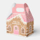 This cute gingerbread house gable box will make packaging up your holiday treats even more fun! The favour box is all decked out for Christmas with a pink roof and white frosting details! The back side has a place to personalise with your name. Colours include pink, brown and white.