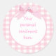 Round sticker has an image of baby pink gingham and a white circle with a pink border, an adorable pink bow and customisable text; a perfect special touch for your baby shower invitations. See matching favour tag, label and square sticker. See the entire Kids’ Corner Sticker collection in the INVITES | Stickers & Labels section.