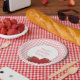 Pink Gingham and Red Strawberries Paper Plate