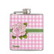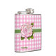 Pink Gingham and Rose Custom Flask
