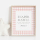 Invite friends and family to participate in a diaper raffle with this elegant pink gingham baby shower sign.