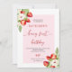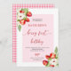 Editable Pink Gingham Berry First Birthday Girl Invitation