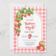 Pink Gingham Berry First Strawberry 1st Birthday Invitation