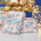 Pink Gingham Blue Christmas Vintage Car Wrapping Paper