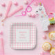 Pink Gingham Check Rustic Girls Baby Shower Paper Plate