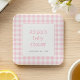 Pink Gingham Check Rustic Girls Baby Shower Square Paper Coaster