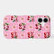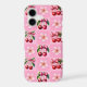 The design features a sweet, alternating grid of pink gingham squares, adorned with delicate illustrations of blossoming cherry flowers and vibrant red cherries tied with romantic pink ribbons. The background utilizes a soft pastel pink, perfectly complementing the floral motifs and creating a feminine yet playful aesthetic.