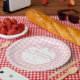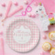 Pink Gingham Coquette Bow Baptism Paper Plate