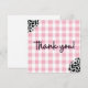 Thank your guests on theme with this adorable pink gingham and cow print Thank You Card!