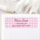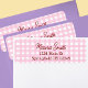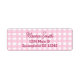 Return address labels in a cute style with feminine text on a pink gingham background. Customise by adding your name and address in the editing window.