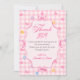 Pink Gingham Floral Bow Baby Shower Thank You Card