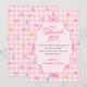 A sweet matching thank-you card featuring pink gingham, floral details, and soft bow accents. Perfect for expressing gratitude after your baby shower with a coordinated and elegant touch.