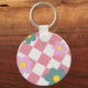 Pink Gingham Floral Pattern – Retro Cute Flower Key Ring
