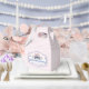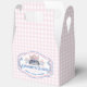 This grandmaillennial style favour box features a label style design that says "Gingerbread Bakery." Colours include pink and blue.