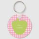 A gift for teachers featuring an illustration of a green apple over a pink gingham background. Personalise with your name.