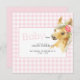 Pink Gingham Horse/Foal Baby Shower Invitation. Pink and White. Square.
