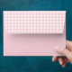 Add a pretty punch to your invitations or announcements, with this stylish envelope done in pale pink. A light pink and white gingham pattern covers the inside of the envelope and on the back flap. Black return address, on the front, is ready to personalise.