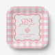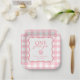 Pink Gingham Paw Print Girls First Birthday Party Paper Plate